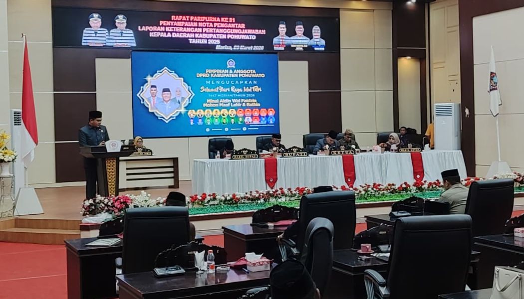 GoPresent – Ketua Fraksi Golkar DPRD Kabupaten Pohuwato, Iqram Bhari Akbar Baderan, menyampaikan sejumlah catatan kritis kepada pemerintah daerah dalam Rapat Paripurna ke-31 terkait pandangan fraksi atas nota pengantar Laporan Keterangan Pertanggungjawaban (LKPJ) Kepala Daerah Tahun 2025, Kamis (26/03/2026).